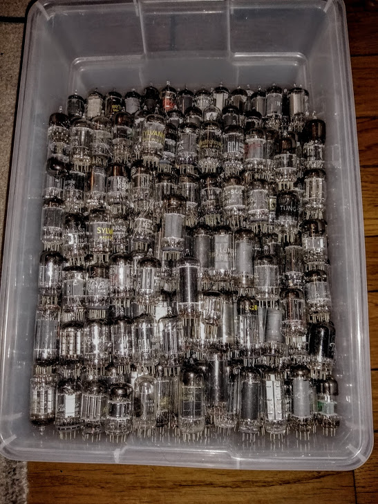 But then I took a second look at the box of reclaimed, gross, filthy tubes that had been stashed away, likely the result of fixing or reclaiming parts from old and broken TVs, stereo consoles, and such. And then I spied something in that bucket of tubes that made all the difference!